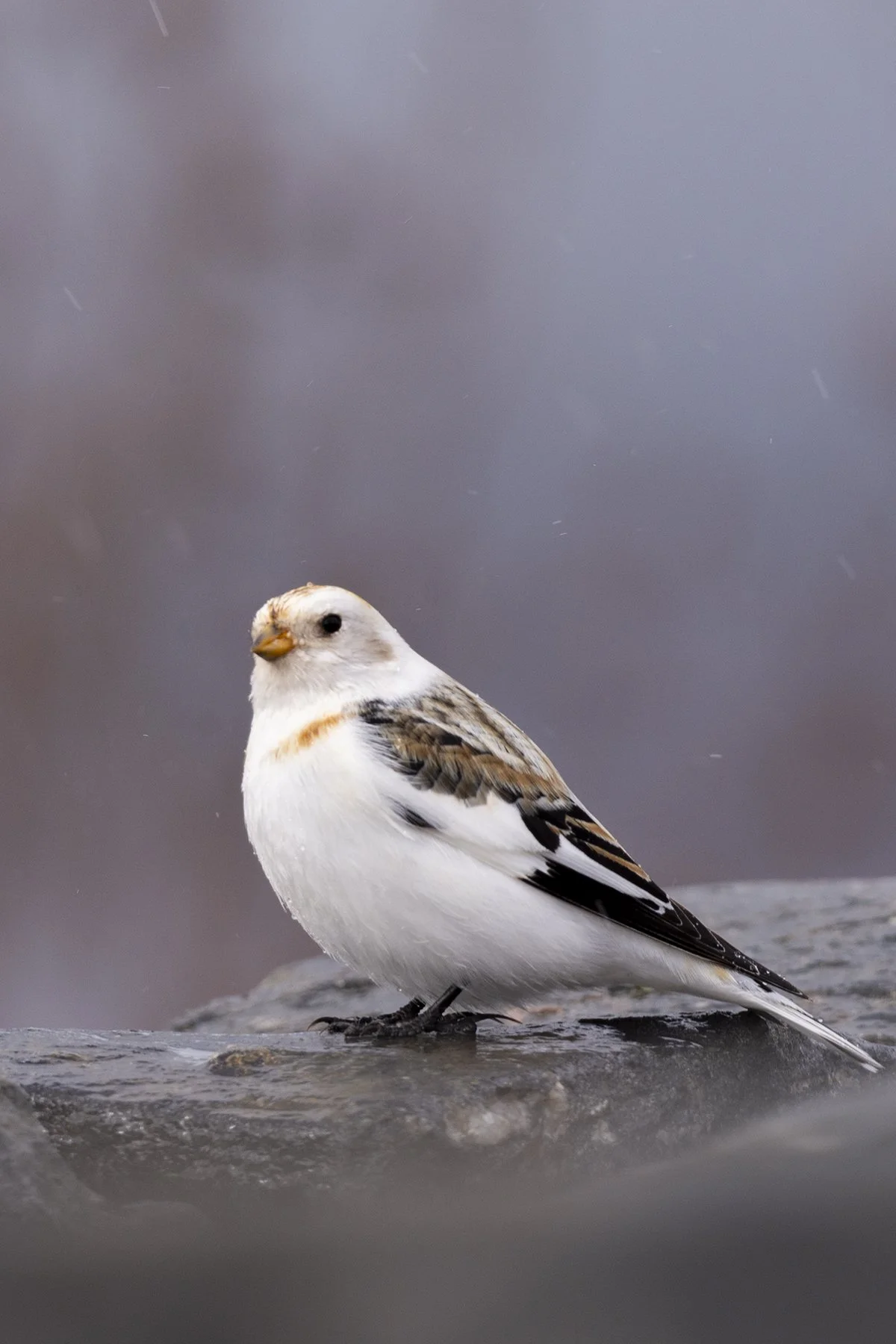 A stunning male snow bunting.